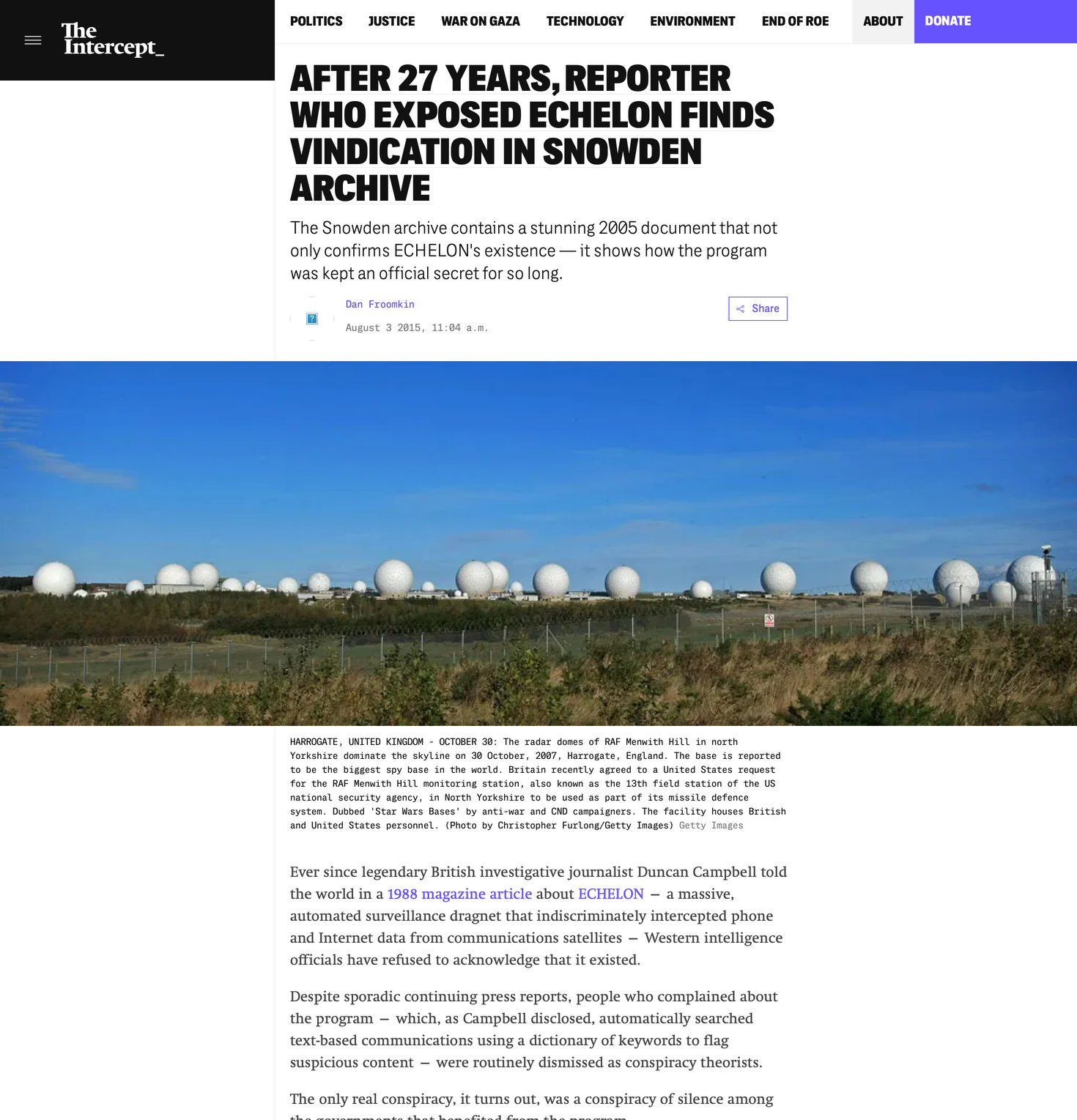 - After 27 Years, Reporter Who Exposed ECHELON Finds Vindication in Snowden Archive