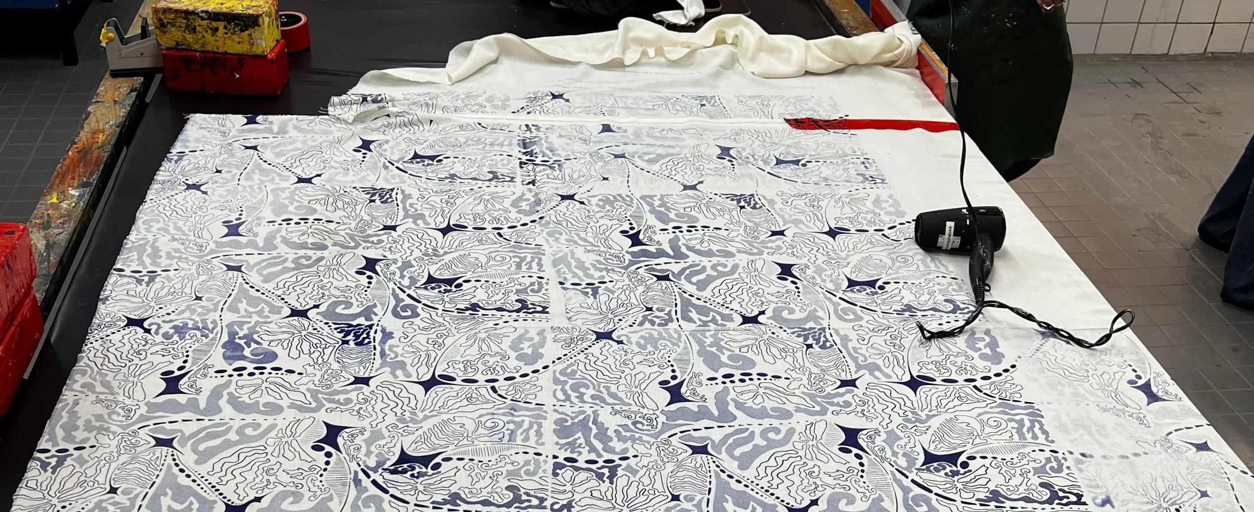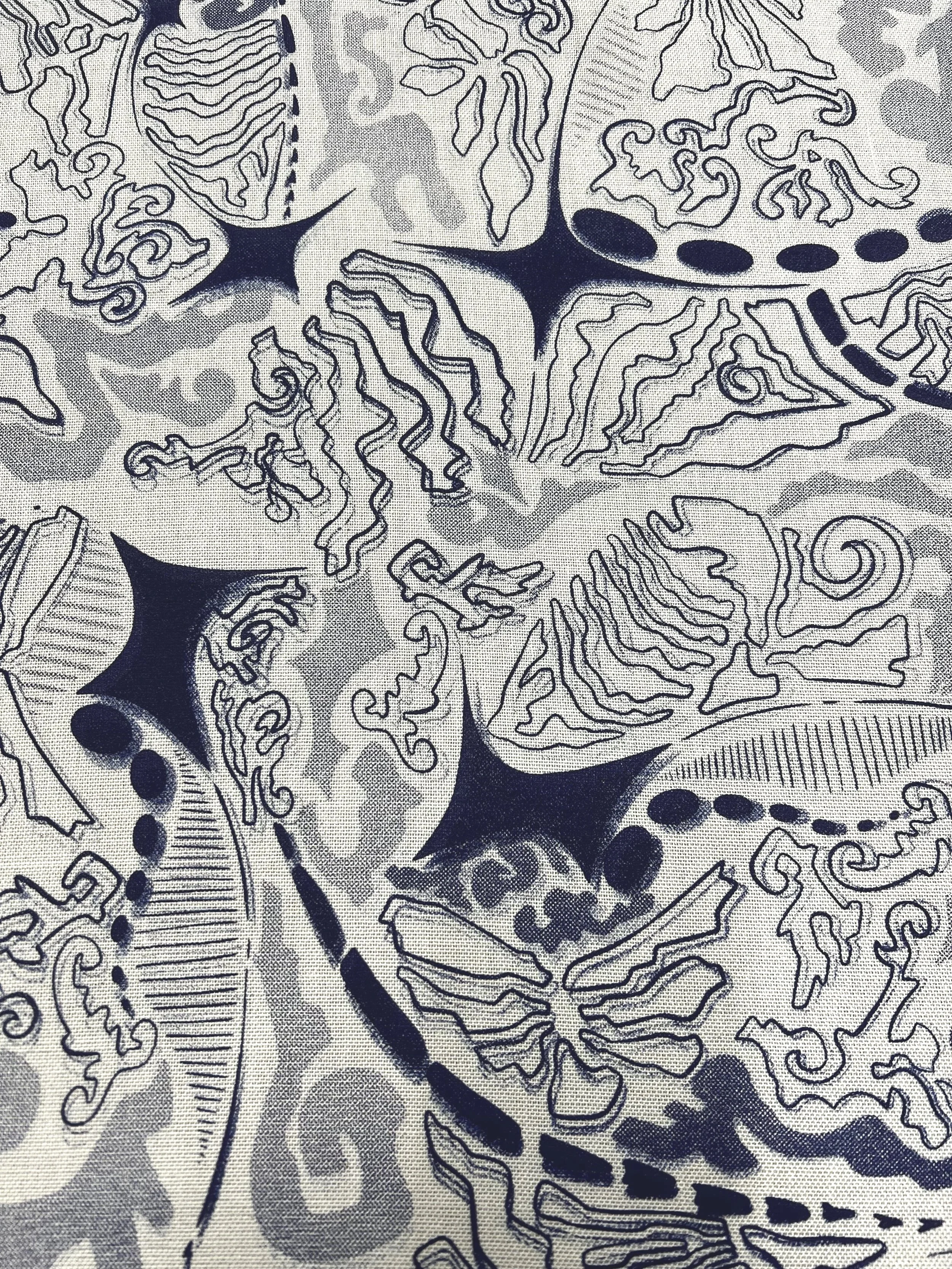 A patterned tent that creates a small interior for shared conversation. The fabric pattern was first hand-drawn, then digitalised and screen-printed onto the textile, shaping an atmosphere that feels both intimate and crafted.